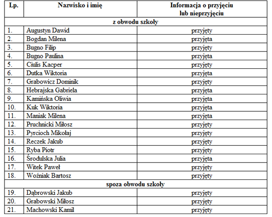 LISTA KANDYDATÓW PRZYJĘTYCH I NIEPRZYJĘTYCH